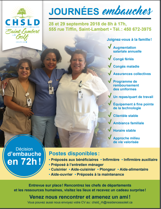 Journées d’embauches – CHSLD Saint-Lambert sur le Golf